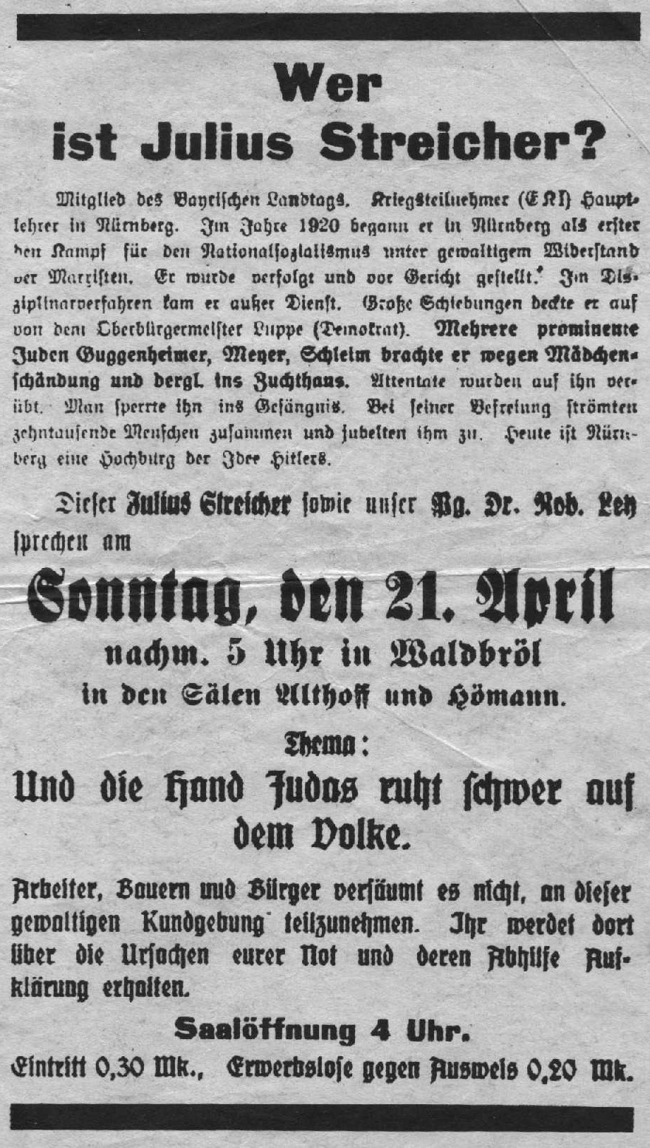 Great Public Protest Meeting “Jewish Terror and Police Harassment in Bad Salzuflen” (1930)