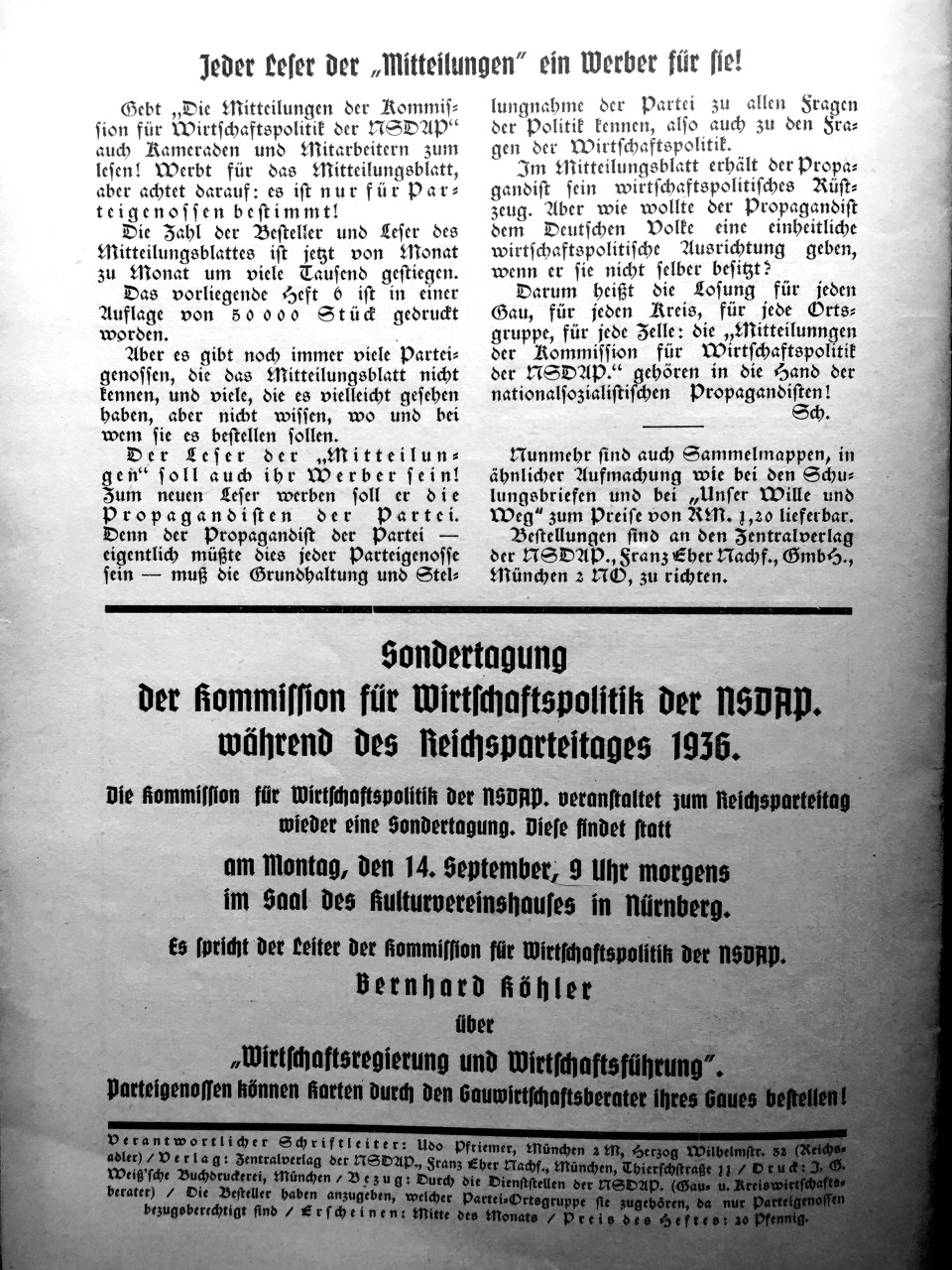 mitteilungen der kommission für wirtschaftspolitik der nsdap (1936)